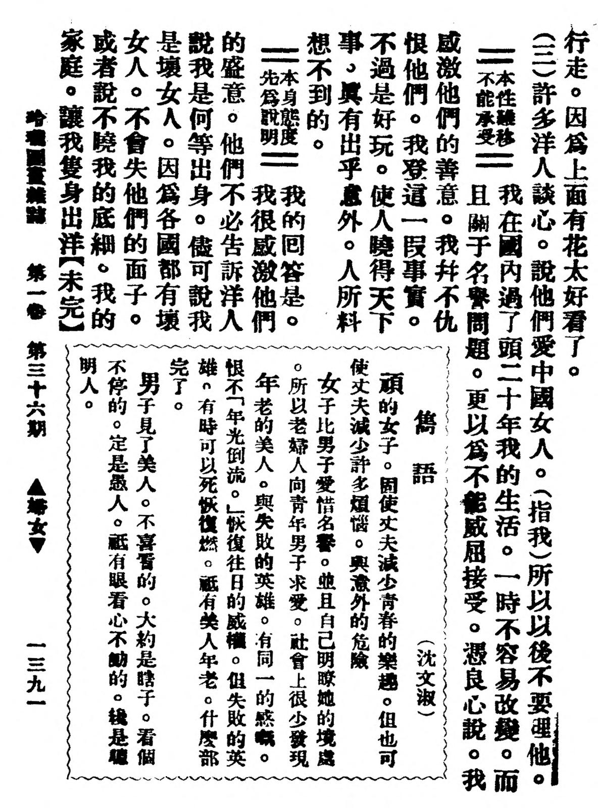 From 玲瓏/Ling long, Issue 036 (1930s Shanghai) Type: Essay Summary: This piece reflects on societal…