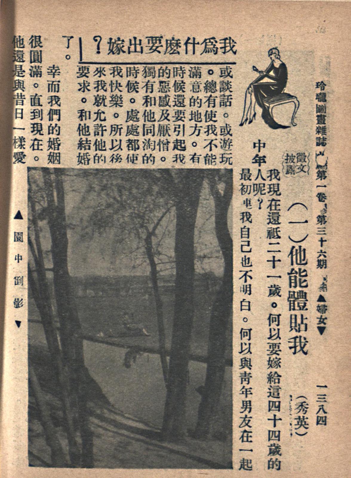 From 玲瓏/Ling long, Issue 036 (1930s Shanghai) Type: Editorial Summary: A woman reflects on her…