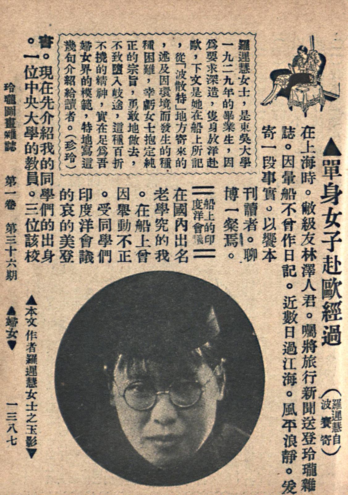From 玲瓏/Ling long, Issue 036 (1930s Shanghai) Type: Story Summary: In 1930, Miss Luo embarked…
