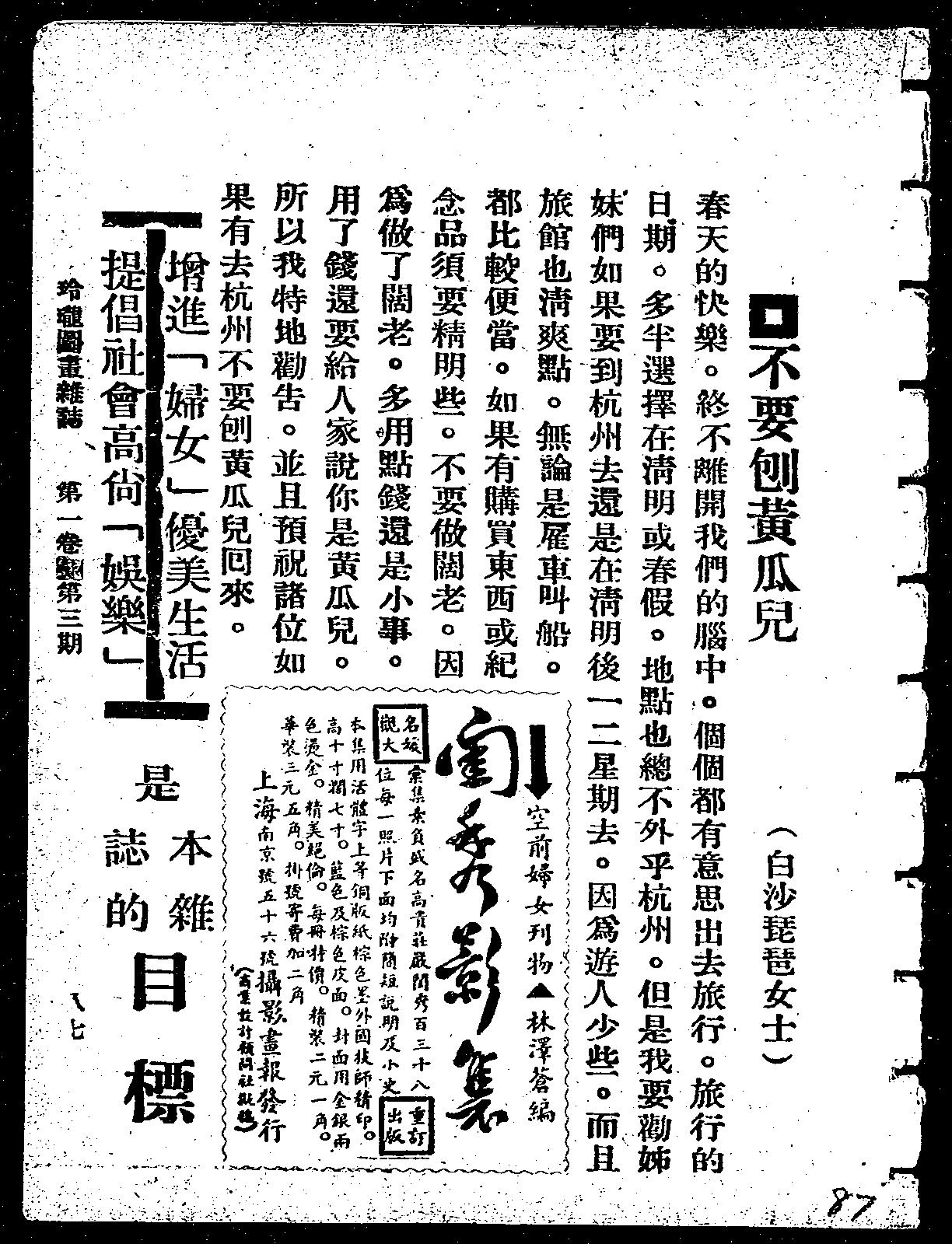 From 玲瓏/Ling long, Issue 003 (1930s Shanghai) Type: Essay Summary: This essay from 1930s Shanghai…
