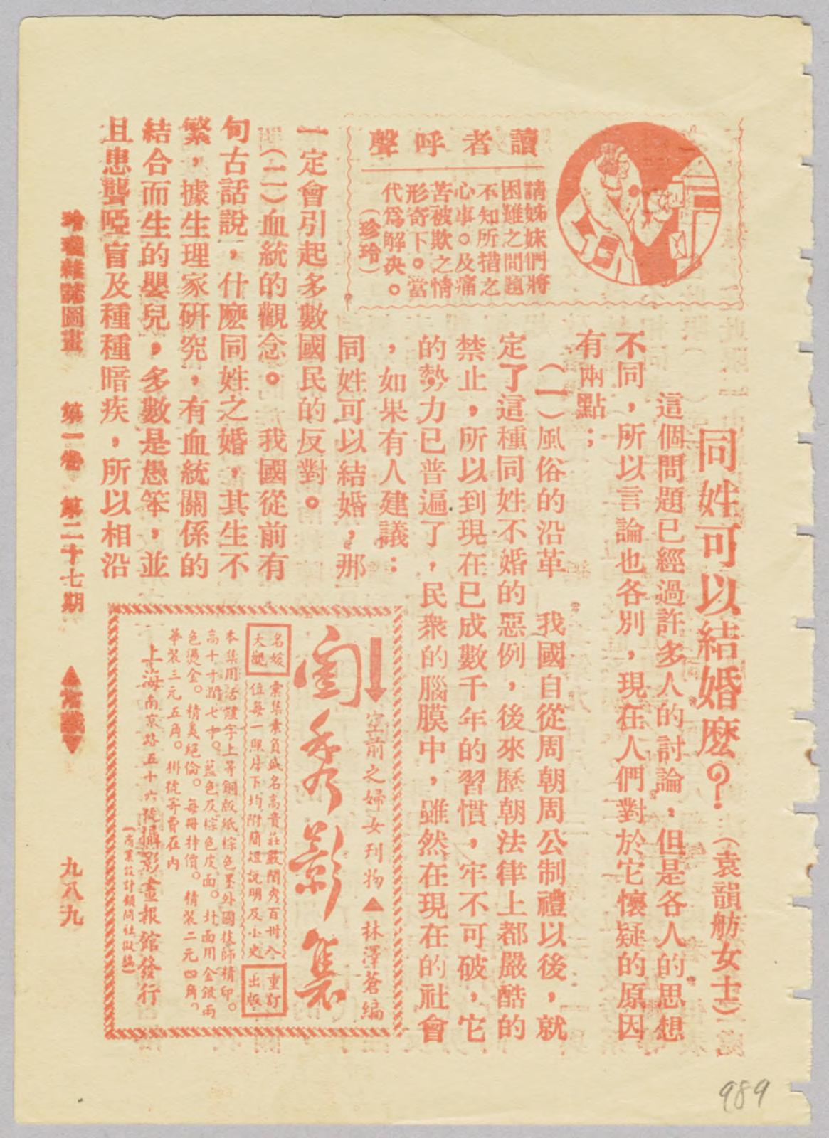 From 玲瓏/Ling long, Issue 027 (1930s Shanghai) Type: Editorial Summary: The article questions societal expectations…