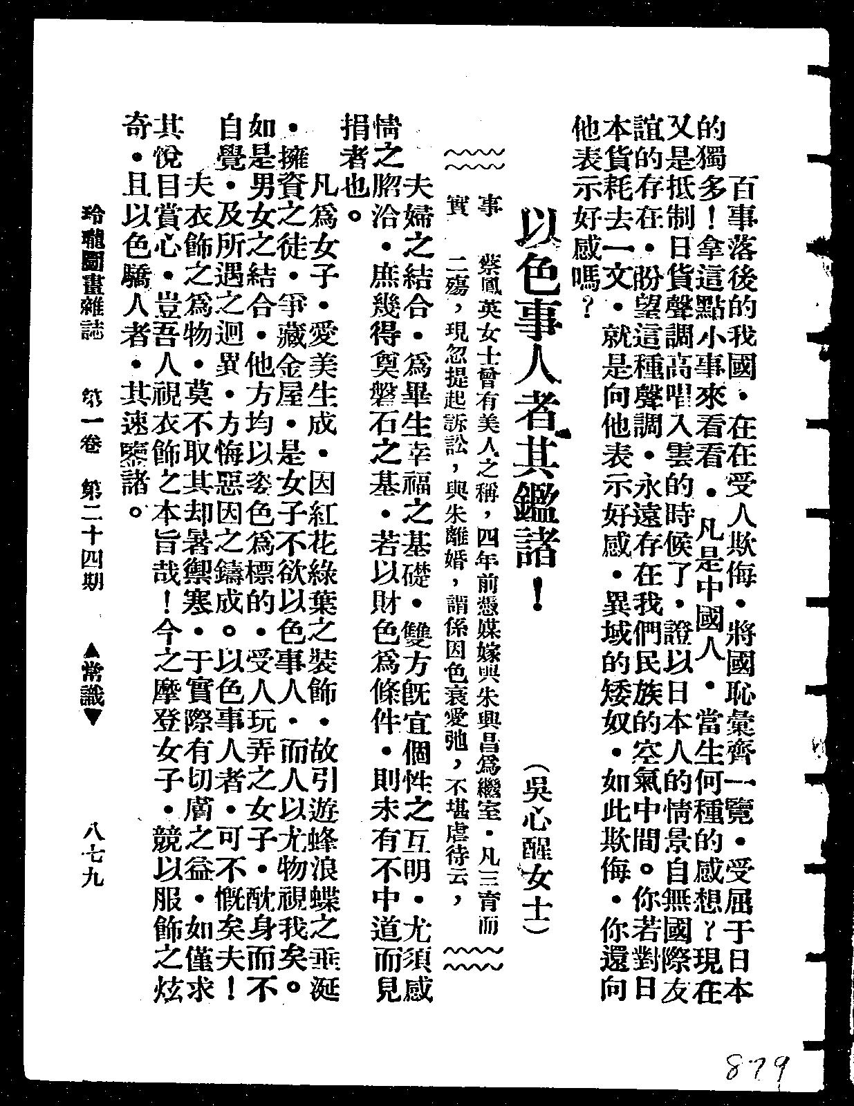 From 玲瓏/Ling long, Issue 024 (1930s Shanghai) Type: Editorial Summary: This piece is an editorial…