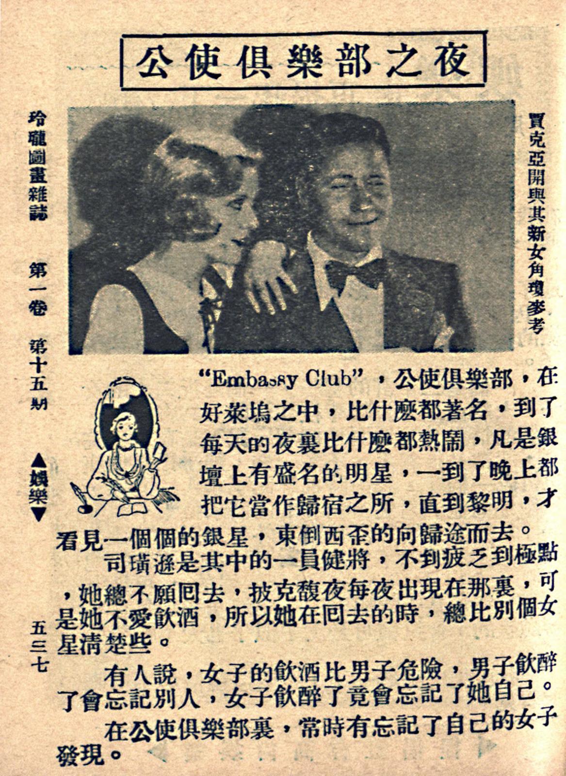 From 玲瓏/Ling long, Issue 015 (1930s Shanghai) Type: Essay Summary: The Embassy Club in Shanghai…