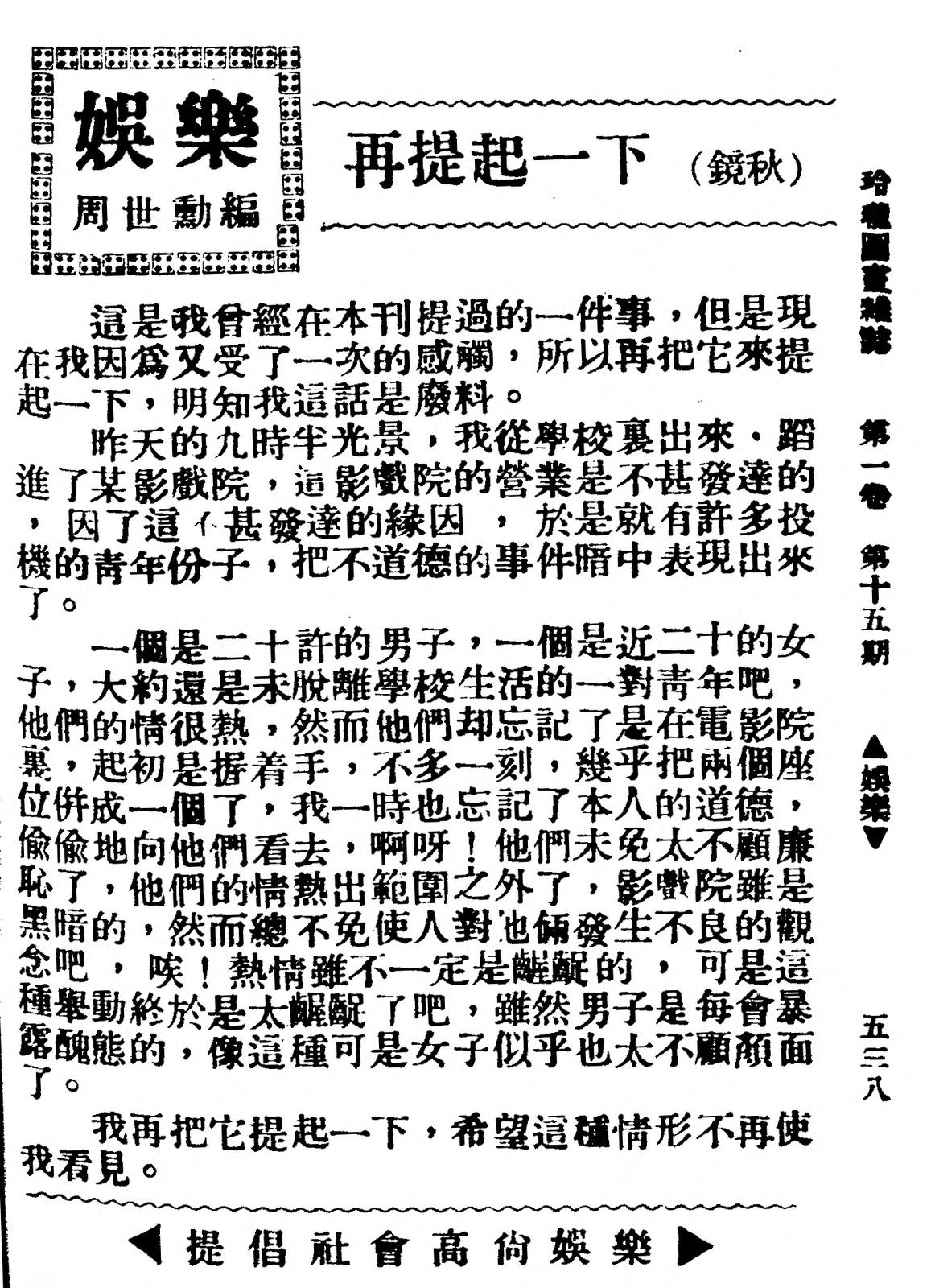 From 玲瓏/Ling long, Issue 015 (1930s Shanghai) Type: Editorial Summary: The author discusses an incident…